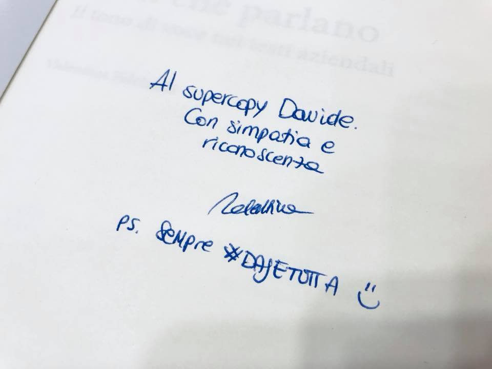 Anche la dedica che Valentina mi ha scritto sul suo libro, acquistato lo stesso giorno, aveva qualcosa di magico, e forse è stato quello il momento in cui tutto è iniziato. Almeno per me.