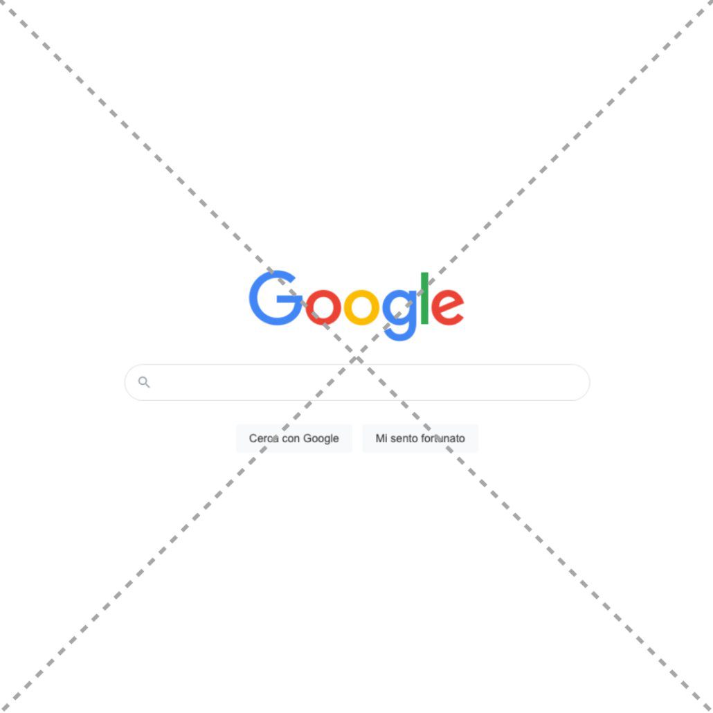 “Google è una perfetta raffigurazione dell’idea di ordine. Analizziamo la sua home page, così semplice ed esaustiva, caratterizzata dal solo logo del brand, al centro, e la barra di ricerca appena sotto. La versione desktop è tutta lì, eccetto qualche link invisibile […]. Le cose importanti stanno al centro: il logo e la barra di ricerca, ovvero “chi sono e cosa posso fare per te”. Non a destra, non a sinistra, non in alto e nemmeno in basso. Al centro del monitor. Quello è un posto speciale che nella nostra immaginazione gode di un certo prestigio. C’è qualcosa di solenne, nel centro, un senso di compiutezza e simmetria. Come se gli elementi che gli gravitano attorno fossero secondari, o conseguenze. Da qui le espressioni “essere al centro dell’universo” e “sentirsi al centro dell’attenzione”, o l’innata curiosità di conoscere cosa si cela al centro della Terra. Nella storia dell’arte il centro è un modello, e la prospettiva centrale incanala l’attenzione verso il punto esatto in cui si incrociano le diagonali.”